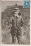 [CP espagnole, Portrait de Francisco Ferrer, montage photo avec en arrière plan le fort de Montjuich, où il sera fusillé le 13 octobre 1909.]