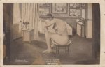 [Carte photo, reproduisant une peinture de J. Galénj (Peintre de la Paix), illustrant un thème cher aux anarchistes et pacifistes, "La grève des mères", pour s’opposer aux marchands de canons et aux dirigeants pourvoyeurs de chair à canons. Femme faisant le nécessaire pour ne pas avoir d’enfants.]