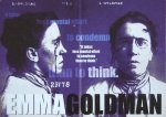 [CP moderne, photo anthropométrique de face et de profil d’Emma Goldman et célèbre citation : Il faut moins d’effort mental pour condamner que pour penser (réfléchir).]
