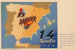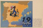 [CP série de 10 cartes (en catalan, castillan, français, anglais et espéranto) de la guerre d’Espagne, publié en 1937. Illustration à l’aide de divers symboles de la victoire des gauches sur la droite lors de l’élection de février 1936 et la libération des milliers d’ouvriers emprisonnés.]