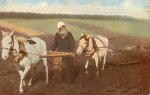 [CP, reproduction d’un tableau de I. E. Répine représentant Léon TolstoÏ labourant lui-même son domaine.]