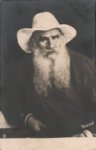 [CP russe, portrait photo de Léon Tolstoï avec un chapeau.]