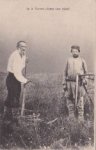 [CP russe (bilingue, russe, français), représentant Léon Tolstoï fauchant lui-même son champ.]
