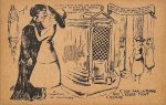 [CP anticléricale des éditions de " L’Idée Libre " de Lorulot. Dessin de Strix montrant un curé séduisant une femme dans une église devant un confessionnal.]