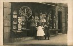 [CP photo de la devanture d’une coopérative produits d’épicerie, et à gauche de la photo d’un marchand de journaux avec "Le Libertaire" et "la patrie humaine".]