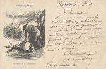 [CP série de 6 cartes anticléricales illustrées par Jules Hénault. Curé pillant une case après le massacre perpétré par l’armée coloniale. A noter la correspondance adressée en octobre 1905 depuis Rochefort à Adolphe Dubord (1883-1917), responsable du journal "Terre et Liberté" à St-Cyr-les-Colons. Dubord qui sera assassiné par un soldat en 1917 lors de son retour de Biribi.]