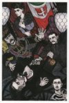 [CP américaine, des éditions Black Powder Press, reproduction de l’oeuvre de Flavio Constantini représentant l’attentat de Gaetano Bresci contre le roi d’Italie Umberto 1er, le 29 juillet (et non le 27) 1900 à Monza (Italia).]