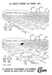 IL FAUT FAIRE LA PAIX (IV) bulles : - IL FAUDRAIT FAIRE DES SOLDES ! - IL FAUDRAIT FAIRE LA GUERRE ! Dessin de KONK ET SURTOUT SUPPRIMER LES ARMÉES DEPUIS 30 ANS C’EST LE SOUHAIT Elan