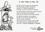 IL FAUT FAIRE LA PAIX (I) cabu EN SOUVENIR DE JACQUES PRÉVERT Sous le képi d’un militaire hargneux Notre ami Cabu a déniché Un pacifiste heureux Qui nous invite à l’imiter. Pour "Elan" 30e année A l’abri de toute "hernu"...llité (…)