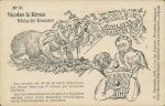 [CP belge, bilingue (français allemand), satirique à propos du Tsar Russe et des nihilistes. Illustration : la dictature russe sous les traits d’un ours à plusieurs têtes, auquel on lance des pilules nihilistes censées combattre l’autocratie russe.]
