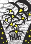 [CP série de deux cartes éditée en solidarité avec les prisonniers. Dessins, oiseaux détruisant une clôture.]]