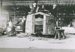 [CP photo espagnole, série de la CNT, durant la guerre d’Espagne, en 1936. Ouvriers en train de travailler au blindage de camions dans l’entreprise Hispano-Suiza, collectivisée.]