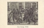 [CP série de l’édition de "l’anarchie" illustrée par Eugène Petit : miséreux regardant le panneau d’affichage des élections.]