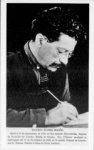 [CP mexicaine ? photo de Ricardo Flores Magón, écrivant un texte. Courte biographie.]