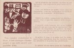 [[CP de "l’en dehors" d’E. Armand, citations diverses. Illustration de Louis Moreau "l’en dehors" faisant la nique aux curé, militaire, jure et bourgeois.]