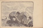 [CP collection des "Temps Nouveaux" de Jean Grave, illustrateur Charles Agard : gravure, deux travailleurs retirant une souche d’arbre ou un rocher.]