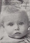 [CP, série de six cartes postales éditées par le Groupe du 3e arrondissement de Paris de la Fédération Anarchiste. Illustration : Portrait du bébé et citation de Bakounine sur les buts de l’éducation.]