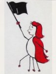 [CP représentation féminine (cheveux rouges) avec drapeau noir . Illustration d’Esther Valancogne.]