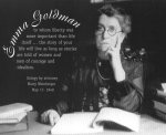 [CP (double) de l’Université de Berkeley en Californie à l’occasion de la publication des correspondances d’Emma Goldman. Photo d’Emma, Senya Fleshin Collection. Citation, éloge mortuaire d’Harry Weinberger.]