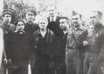 [CP de l’Association "Liber Terre". Hommage à la Révolution Espagnole, photo de Sébastien Faure au milieu d’un groupe de militant(e)s (dont Durruti), lors de son voyage dans l’Espagne libertaire de 1936.]