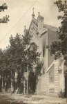 [Troisième série de photos sur les "Sucesos de Barcelona" Evénements de Barcelone, "Semaine Tragique" (fin juillet 1909). Vue du porche (gardé par trois soldats) du Couvent Escolapios. Evénements dont Francisco Ferrer sera rendu responsable.]