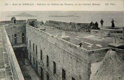 [CP espagnole, Portrait de Francisco Ferrer, montage photo avec en arrière plan le fort de Montjuich, où il sera fusillé le 13 octobre 1909.]