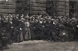 [CP portugaise, buste de Francisco Ferrer par le sculpteur français Emile Derré. Ferrer au moment de son exécution, soutenu par sa fille Trinidad.