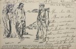 [CP des “Temps Nouveaux” de Jean Grave. Dessin d’Édouard Couturier (gravé par Berger) pour illustrer "Patriotisme-Colonisation" : Soldat colonial faisant règner l’ordre républicain.]